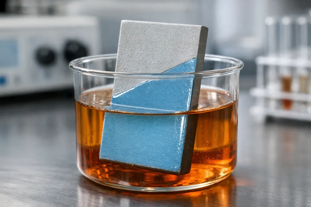 • Acid-resistant Polyurethane (ZDSpoxy Formulation): Retains >99% mechanical strength and shows no measurable etching or swelling over the test period