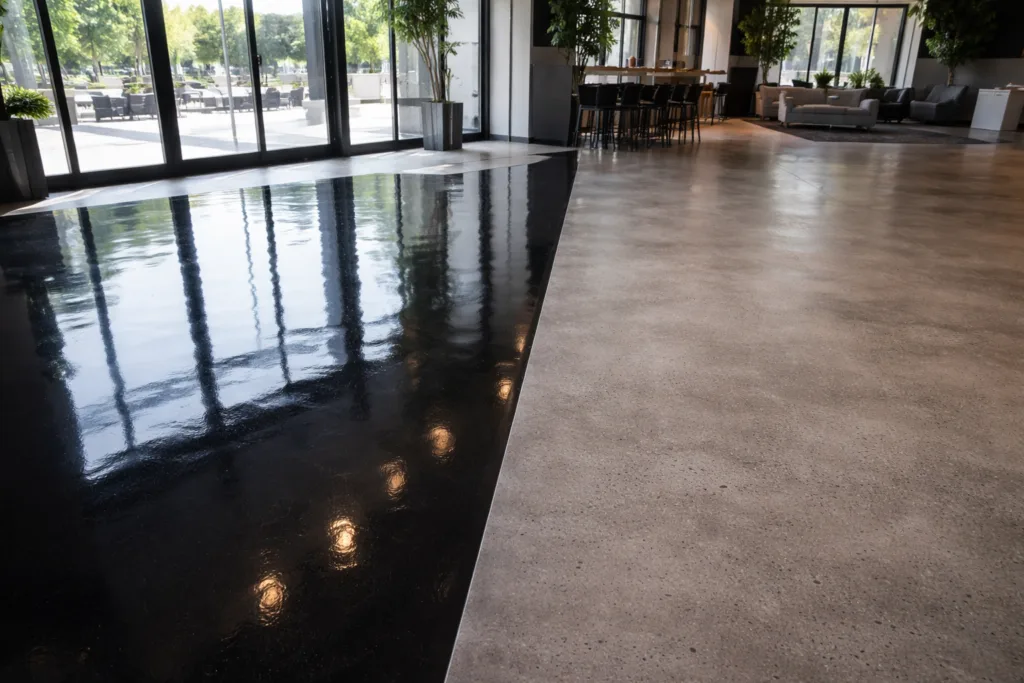 - Retail/Public: Polished concrete for aesthetics; epoxy for color and slip resistance