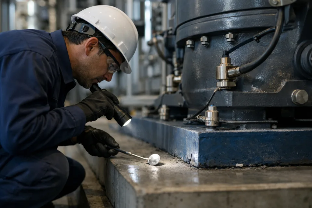 Routine checks extend the life of grouted compressors. Inspect the grout for cracking, debonding, or fluid leaks. Periodically re-torque anchor bolts and monitor vibration trends. Foundation repairs should be prompt to prevent secondary damage. ZDSpoxy recommends maintaining a log of all inspection findings for ongoing reliability.