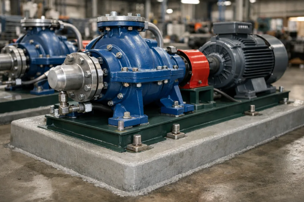 | Horizontal Split Case Pumps | Larger baseplate; often uses cementitious or epoxy grout for heavy-duty vibration dampening | Municipal water, large-scale processing, fire protection |