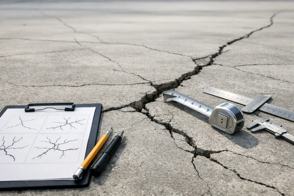 - Crack Map Recording: Draw a simple ‘crack map’ of your surface, noting length, width, position, and date. Re-inspect every few weeks. Watch for widening, lengthening, or new branches forming.