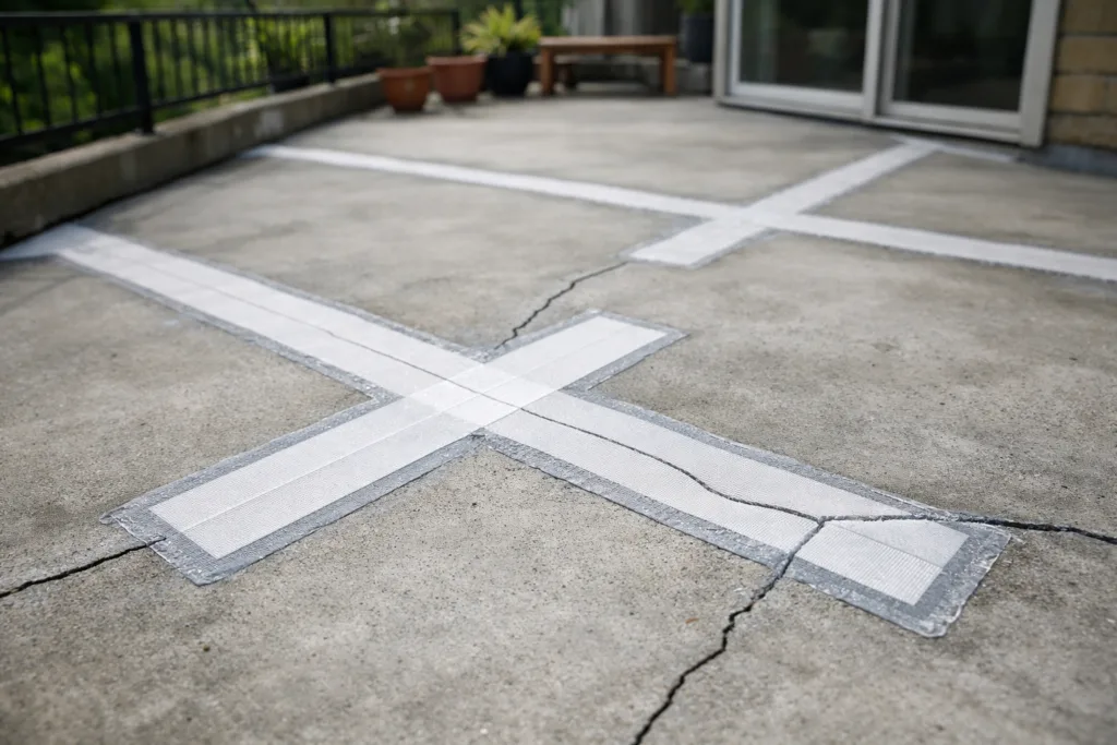 - Surface Reinforcement: Overlay with fabric-backed, elastomeric membrane systems, especially at thresholds or corners known for movement.