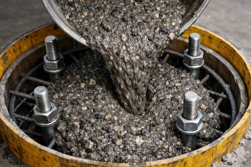- Application: Pour or trowel the mixed grout into voids, runner systems, and under baseplates. Formwork must be leakproof and temperature stable.