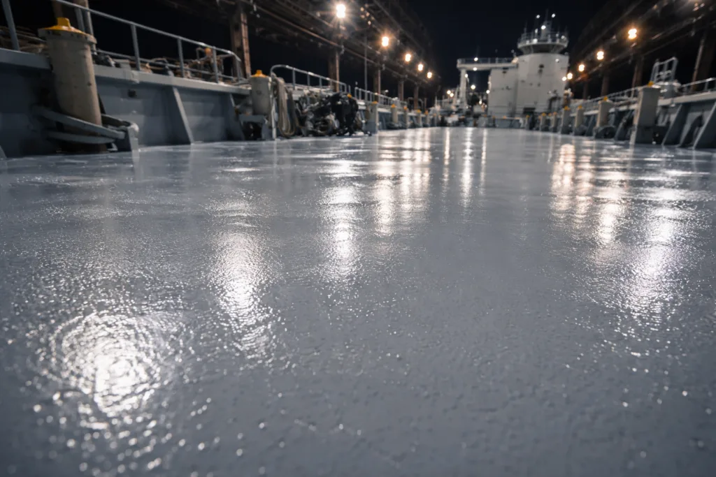 Marine decks vary: steel, aluminum, marine plywood, and composites all have different expansion rates, porosity, and surface profiles. The epoxy primer layer can be tailored for wet tolerance on wooden decks (to prevent rot) or rust conversion on metals. On mixed substrates, engineers may call for a two- or three-layer build to even out performance. Product selection should always consider deck movement, prior coatings, and desired longevity.