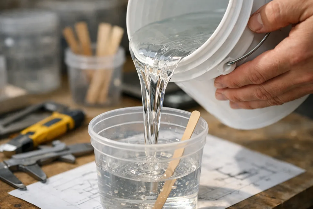Pot life is rarely negotiable. Always mix only what you can apply in 20–60 minutes (per product data). Plan for two or three sequential mixes using small batches rather than risking a large pail heating and gelling before you finish. For fast-cure or cold weather jobs, shorten working window accordingly.