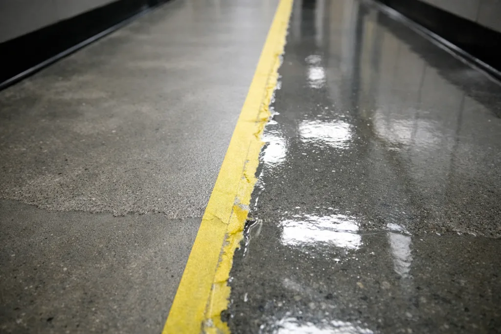 An older commercial hallway with subsurface cracks benefited from matte polyaspartic waterproof topcoat application. The matte finish minimized the visibility of minor patch repairs, kept glare in check under fluorescent lighting, and maintained an attractive appearance between routine sweeps and cleanings.