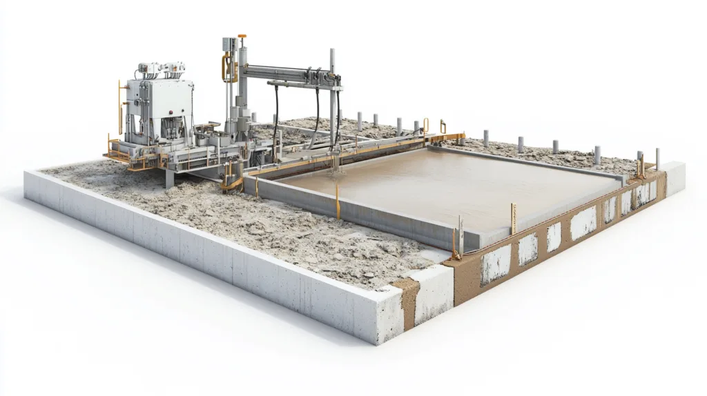 - Pouring: One-direction pour. Avoid cold joints.