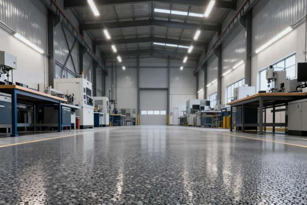 - Heavy-duty floors in warehouses, factories, and workshops